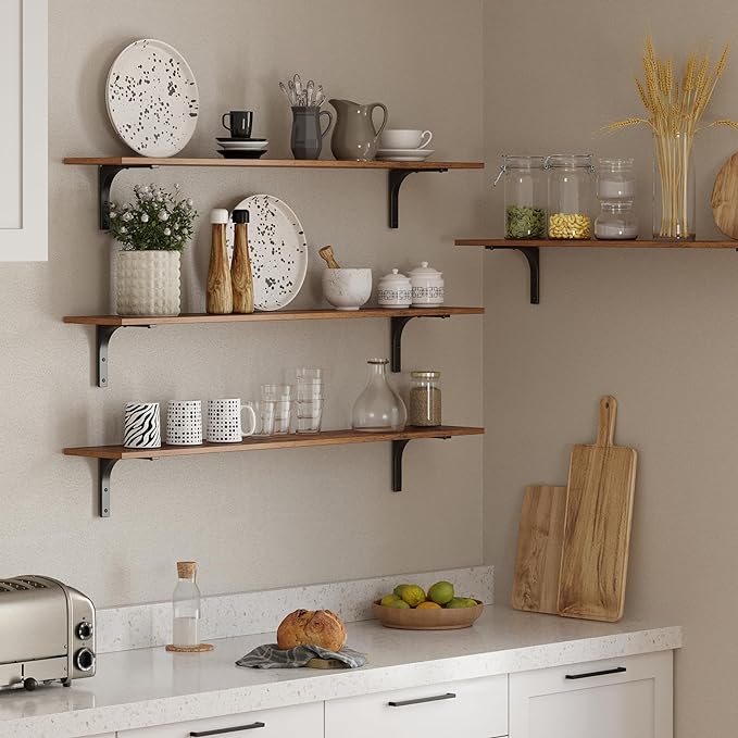 DINZI LVJ Long Wall Shelves, 47.3Inch Wall Mounted Shelves Set of 4, Extra Large Wall Storage Ledges with Sturdy Metal Brackets for Living Room, Bathroom, Bedroom, Kitchen, Rustic Brown