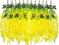 24 Pack Artificial Fake Wisteria Vine Ratta (3.75 Feet) Hanging Garland Silk Flowers String Home Party Wedding Decor (Yellow)
