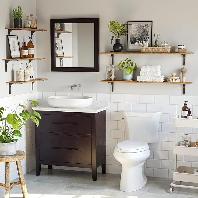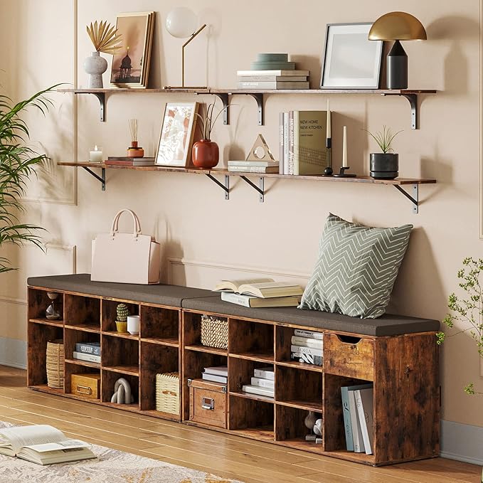DINZI LVJ Long Wall Shelves, 55.1Inch Wall Mounted Shelves Set of 2, Extra Large Floating Storage Ledges with Sturdy Metal Brackets for Living Room, Bathroom, Bedroom, Kitchen, Rustic Brown