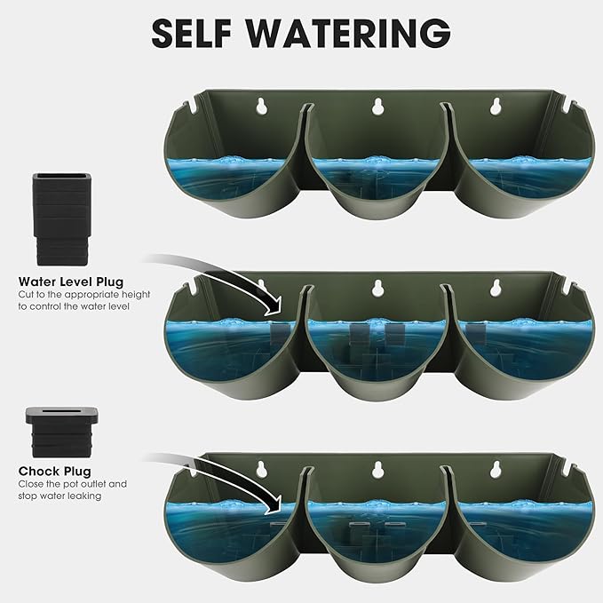 Worth Garden Upgraded 12 Sets (36-Pocket) Self Watering Stackable Vertical Planters - Wall Mounted Plastic Plant Grow Pots fr Strawberries Flowers Herbs - Indoor Outdoor Green Wall Decoration (Green)