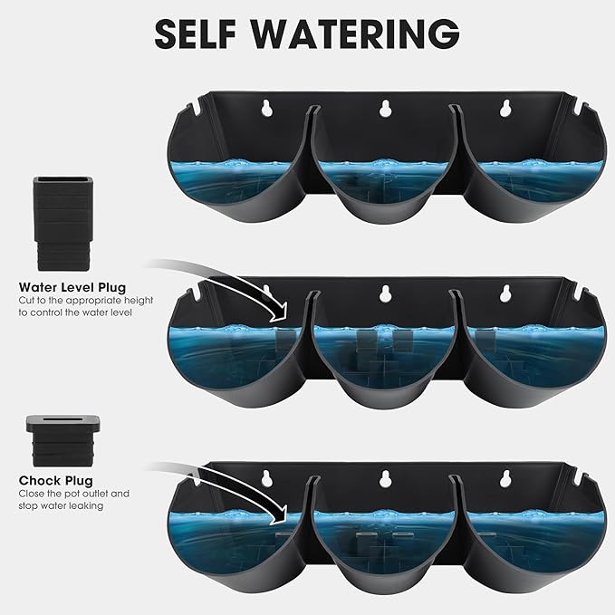 Worth Garden Upgraded 12 Sets (36-Pocket) Self Watering Stackable Vertical Planters - Wall Mounted Plastic Plant Grow Pots fr Strawberries Flowers Herbs - Indoor Outdoor Green Wall Decoration (Black) Sale