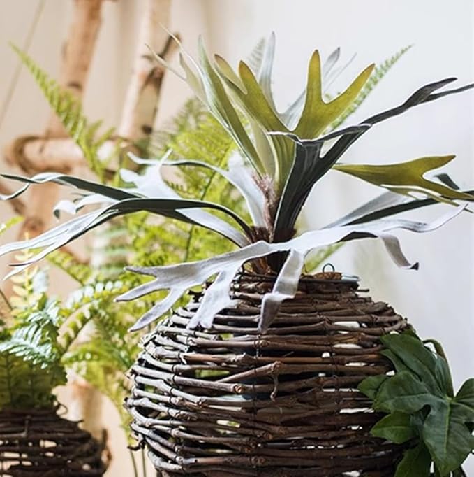 Melorca&Guilla Artificial Plants Artificial Succulent Plants,2PCS 35" Diam Large Fake Staghorn Ferns,Artificial Staghorn Fern Artificial Ferns Hanging Plants for Shop Garden Office Home Décor