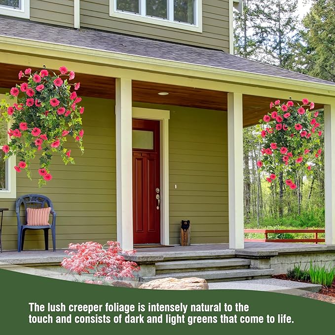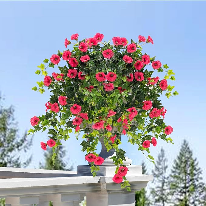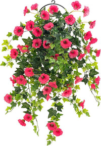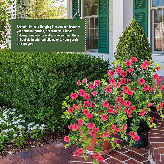 Artificial petunia plant Faux greenery Outdoor decoration hanging basket trumpet flower Garden Indoor balcony Decoration, Red