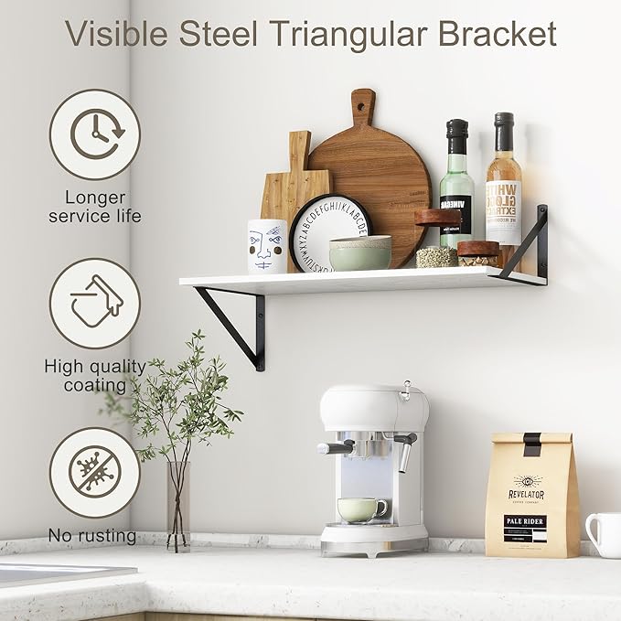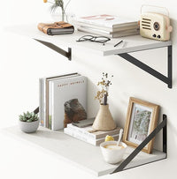 Deep Floating Shelves, 12 Inch Deep Floating Shelves for Wall, 24"W x 12"D Wall Shelves for Books, Rustic White Wooden Shelves, Large Wide Display Shelf for Bathroom, Living Room, Bedroom, Set of 2