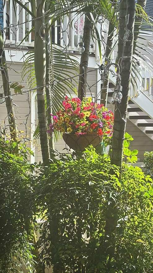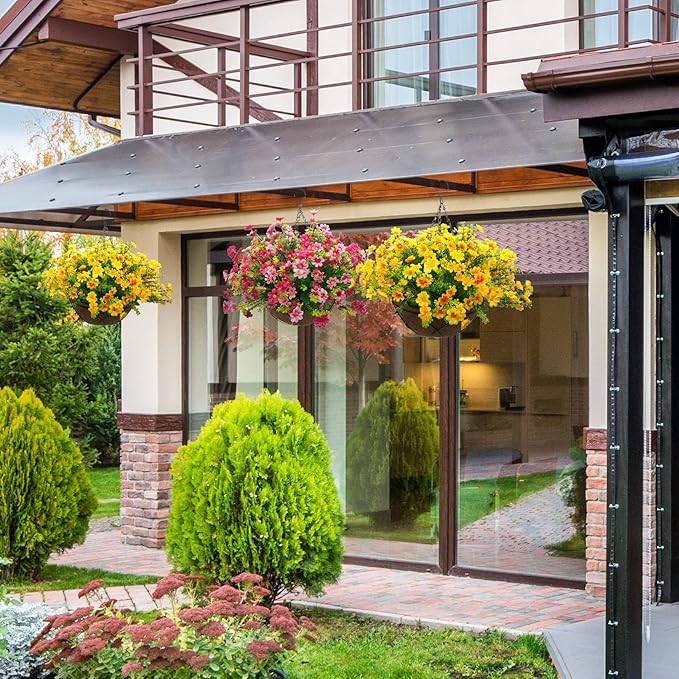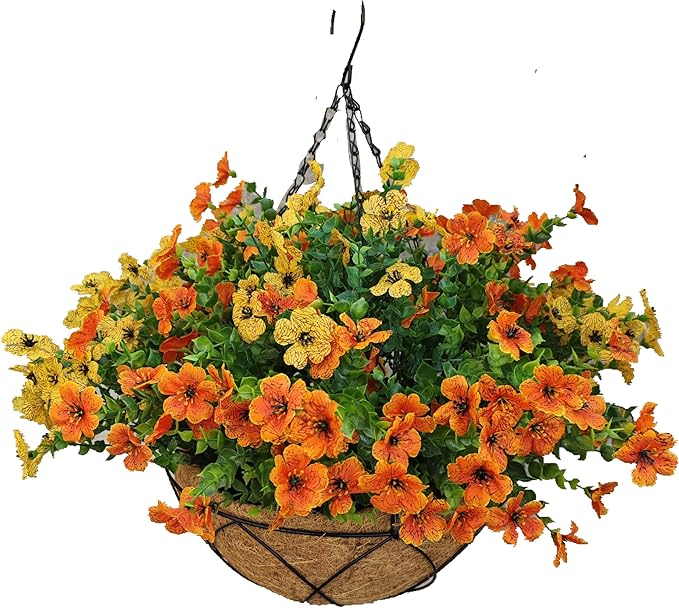 Artificial Faux Hanging Plants Flowers Basket for Summer Autumn, Colorful Daisy Flowers Eucalyptus UV Resistant Look Real for Outdoor Outside Porch Decoration