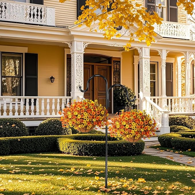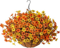 Artificial Fake Hanging Baskets Fall Flowers for Outdoors Autumn Decoration, 12 PCS Faux Daisy Silk Plants Outside UV Resistant Look Real Yard Patio Front Porch Balcony Home Decor (Orange Yellow) Sale