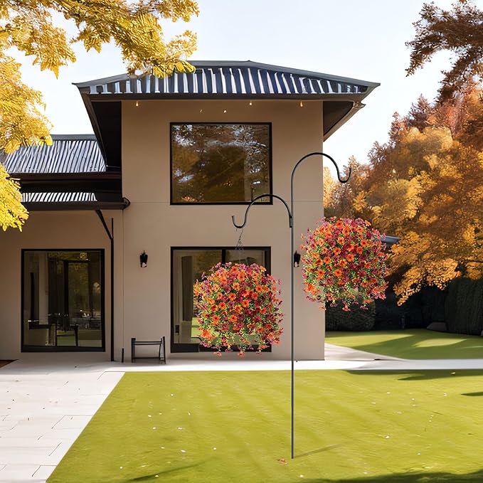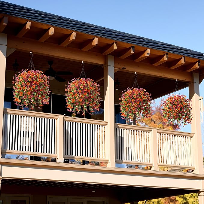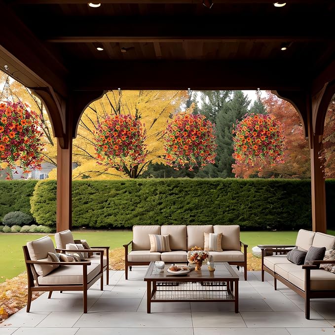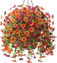 Artificial Fake Fall Hanging Flowers Plants with Basket for Outdoor Decor, Fake Mums Autumn Plants No Fade Plastic Faux Silk Daisy Flowers Fall Decoration for Outside Garden Porch Patio(Yellow Brown)
