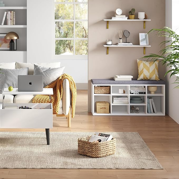DINZI LVJ Long Wall Shelves, 31.5" Wall Mounted Shelves Set of 4, Large Floating Shelves with Metal Brackets, for Living Room, Bathroom, Bedroom, Kitchen, White and Gold