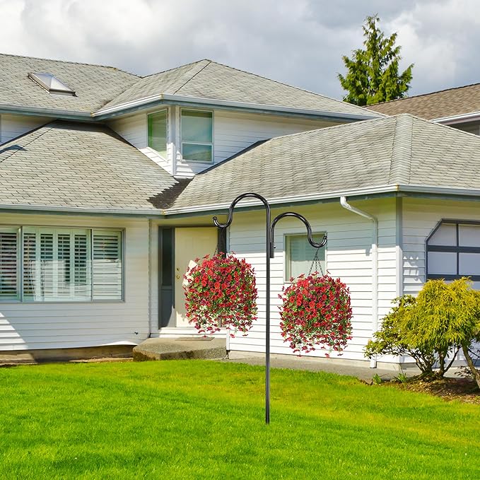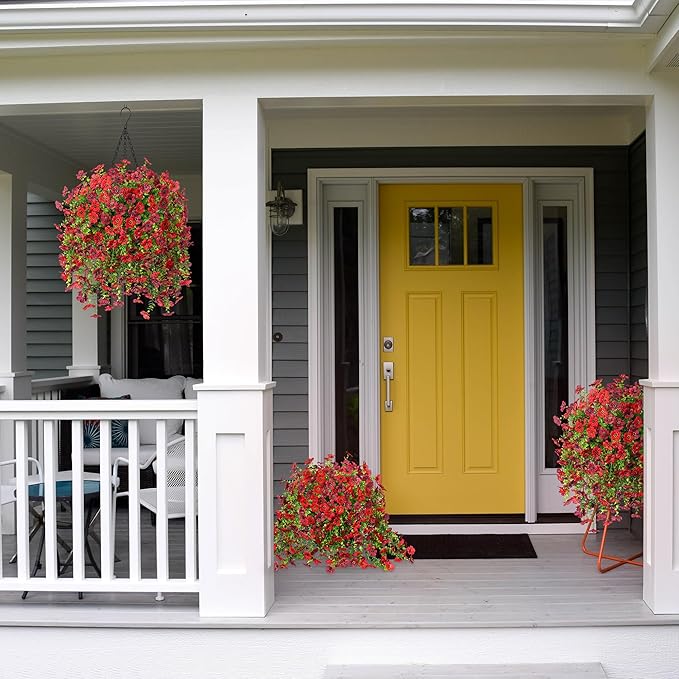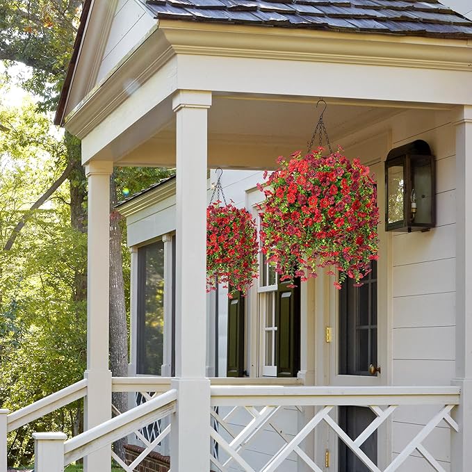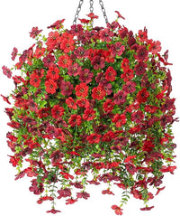 Artificial Fake Hanging Flowers Plants with Basket for Outdoor Spring Decoration, Faux Silk Daisy Flower Real Touch UV Resistant for Outside Porch Patio Garden Yard Home Decor(Red Brown)