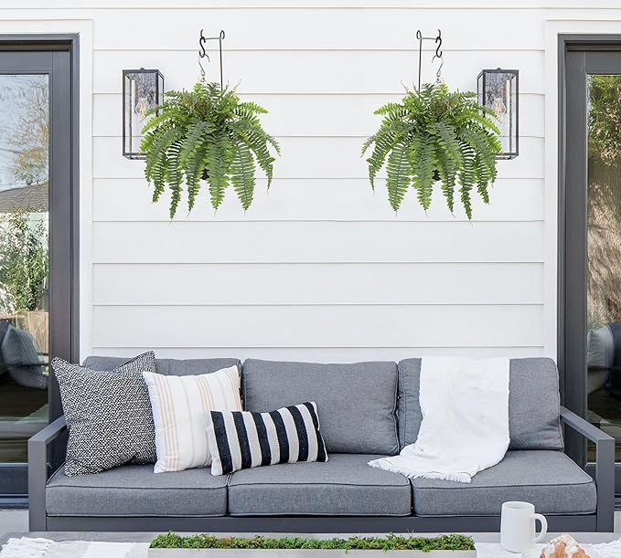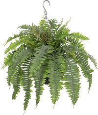 Artificial Fern Hanging Basket Plant 25" Boston Ferns 31 Leaves Greenery Plants with Rattan Pot for Outdoors & Indoor Fake Fern Bush Plant in Pot for Patio Entrance Porch Garden Decor Dusty Green