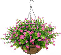 Artificial Hanging Flowers Basket, 12 UV-Resistant Bundles of Realistic Fake Flowers, Faux Plants for Outdoor Decor, Home, Garden, Porch, Patio, Spring & Summer Decorations, Pink