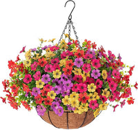 Orgrimmar Artificial Hanging Flowers Basket Outdoor Fake Hanging Plants UV Resistant Realistic Silk Flowers Eucalyptus in Coconut Lining Baskets for Home Porch Balcony Patio Yard Muti-Color