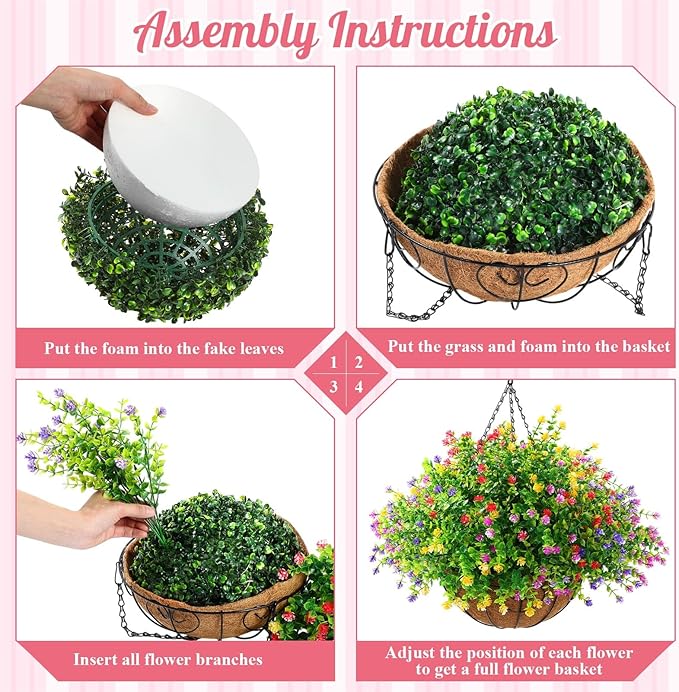 Lyrow 2 Pcs Artificial Hanging Flowers with Fake Basket Outdoor Realistic Hanging Plants with 12 Inch Coconut Lining Basket for Patio Lawn Garden Porch Decor(Colored)