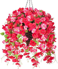 Ivydale Artificial Faux Hanging Flowers Plant Baskets for Outdoors Decoration, Fake Hibiscus UV Resistance Realistic Silk Flower for Outside Home Patio Porch Balcony Garden Wedding, Mix