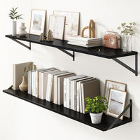 Floating Shelves 55 Inch Long, 10" Deep Floating Shelves, Black Wall Shelves 55 x 10, Set of 2, Wide Large Display Storage Shelves for Bathroom, Living Room, Rustic Wood Shelves with Brackets