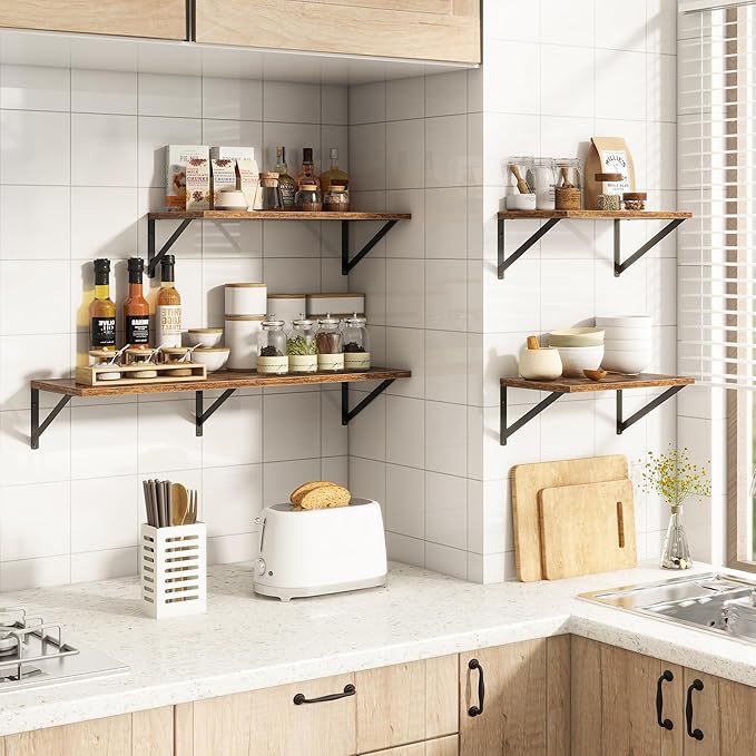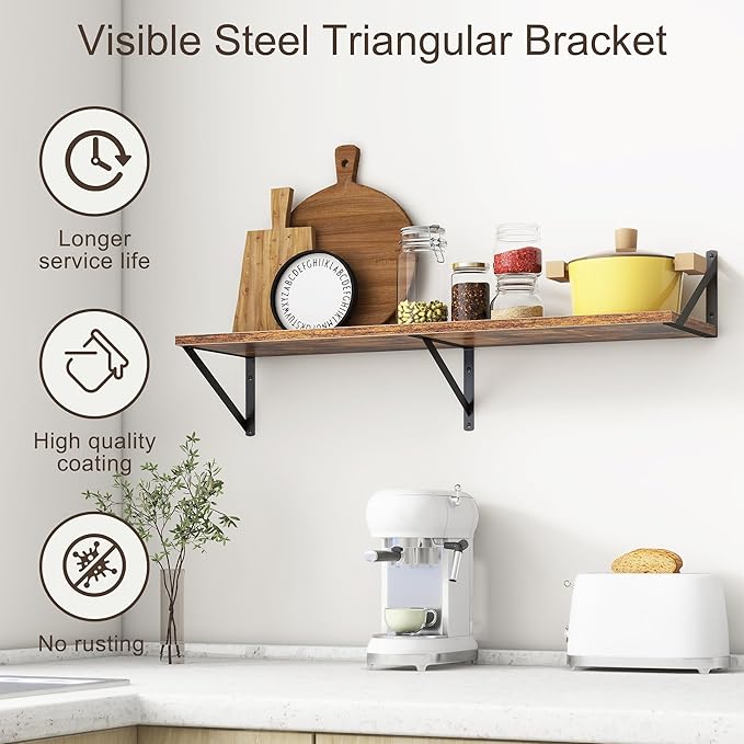 36"W x 10"D Floating Shelves, 10 Inch Deep Floating Shelves, Farmhouse Rustic Deep Wall Shelves for Home Decor, Wide Large Floating Shelf for Bathroom, Living Room, Kitchen, Study Room, Rustic Brown
