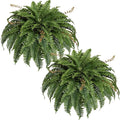 KHOYIME Artificial Hanging Flowers Plants Basket for Outdoors Indoor, 2 Set Faux Silk White Yellow Purple Fuchsia Red Pink Morning Glory Fake Eucalyptus Planters Spring Summer Home Garden Patio Decor