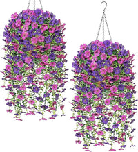 Dremisland 2 Set Artificial Hanging Baskets Outdoor Multicolored Silk Flower Plants Fake Flowers DIY Chain Hanging Basket Daisy Faux Flowers with Pot for Porch Garden Balcony Patio Summer Decor