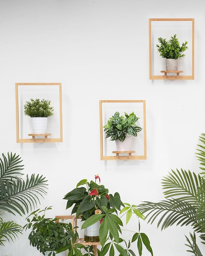 yadoker Wall Planters for Indoor Plants,Bamboo Hanging Plant Holders, Wall Decor Plant Stand, 3-Pack Window Plant Shelves for Living Room & Entryway Sale