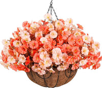 Artificial Fake Hanging Flowers with Basket for Fall Decoration, 12 Bundles Faux Silk Morning Glory Plants for Outdoor Planters, Realistic UV Resistant Artificial Flowers for Outside Porch Garden