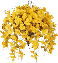 Artificial Fake Fall Hanging Flowers Plants Baskets for Outdoor Decoration, 5Pcs Faux Silk Hibiscus Long Vines in Planter UV Resistant Realistic Flower for Outside Home Porch Patio Garden, Fall Yellow