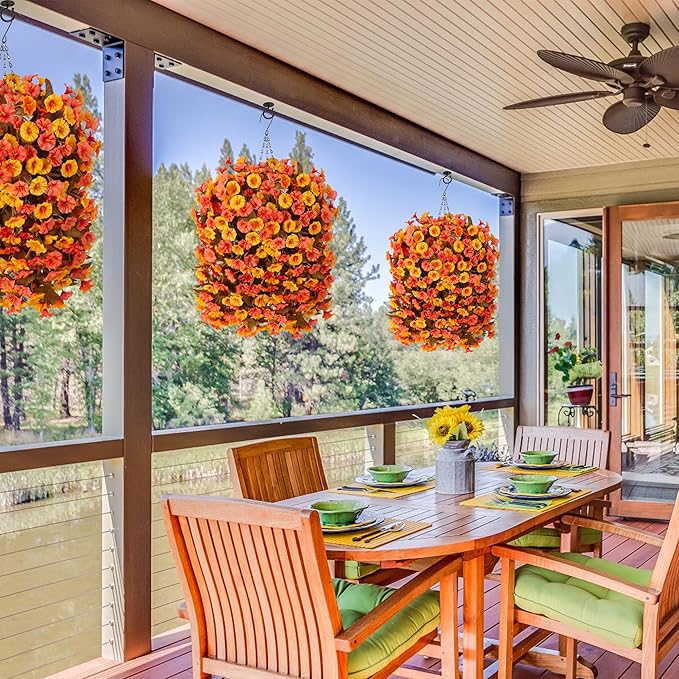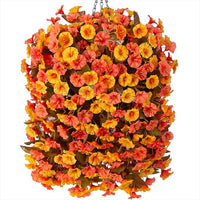 Artificial Fall Hanging Flowers Plants with Baskets for Outdoor Decoration,Fake Faux Silk Morning Glroy Flowers Arrangement Planter for Home Indoor Outside Porch Patio Decor