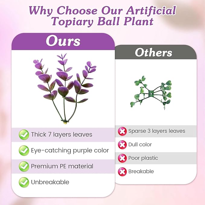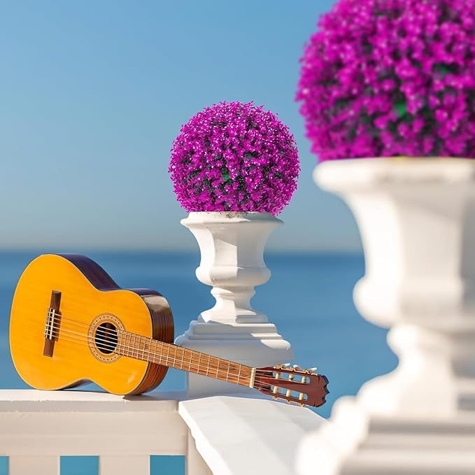 2 PCS 16 Inch Artificial Plant Purple Topiary Ball, Anti-Fading Faux Decorative Boxwood Balls, Hanging Fake Plants Balls for Garden, Wedding Party, Patio Indoor Outdoor Decor (Red)