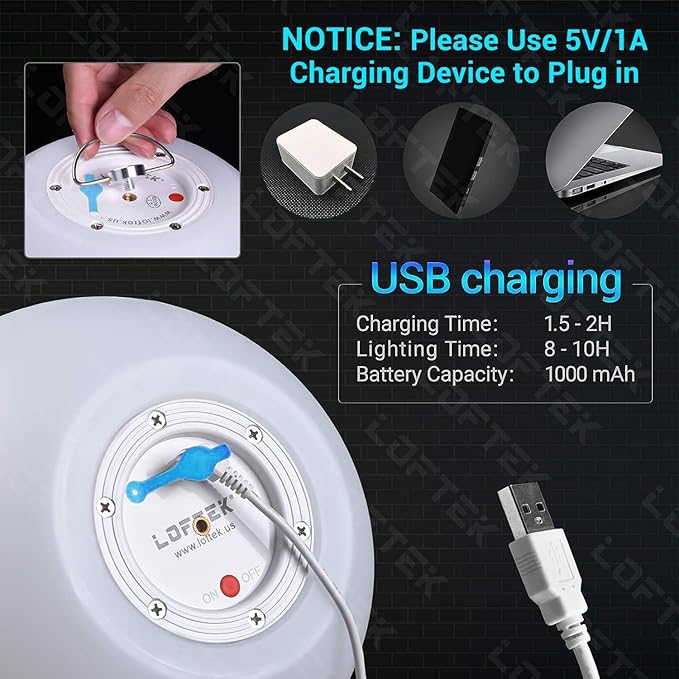 LOFTEK 8-inch LED Night Light Ball: 16 RGB Colors and Dimmable Globe Light with Remote, Upgraded Folding Handle, Seamless Matte Housing, Rechargeable IP65 Floating Pool Light, for Nursery or Decor