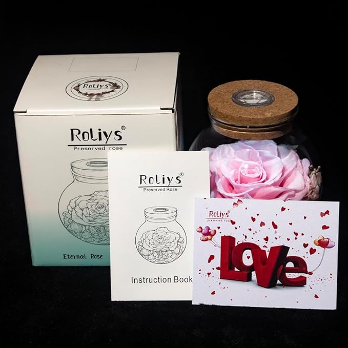 Preserved Real Roses with Colorful Mood Light Wishing Bottle, Eternal Rose,Never Withered Flowers, for Bedroom Party Table Decor, Christmas Decorations, a Gifts for Women 1pcs Pink