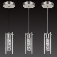 Modern LED Pendant Light, Hanging Crystal Ceiling Fixture Mini Bedroom Bedside Table Small Chandelier with Clear Glass Shade(3 Pack Brushed Nickel)