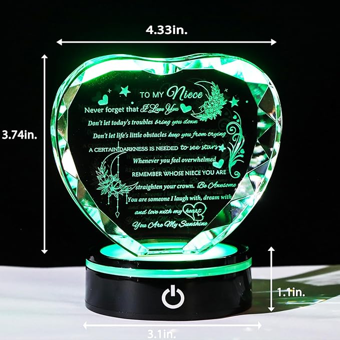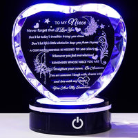 YWHL Niece Gifts from Auntie Uncle Heart Crystal Inspirational Graduation Gift for Niece with Colorful LED Base Unique Niece Gifts from Aunt on Birthday Christmas Valentine Day