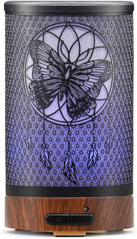Essential Oil Diffuser - Multifunction Aromatherapy Diffuser 7 LED Color Changing Light 100ML Metal Diffuser Easy to Clean Suitable for Home,Office(Butterfly)
