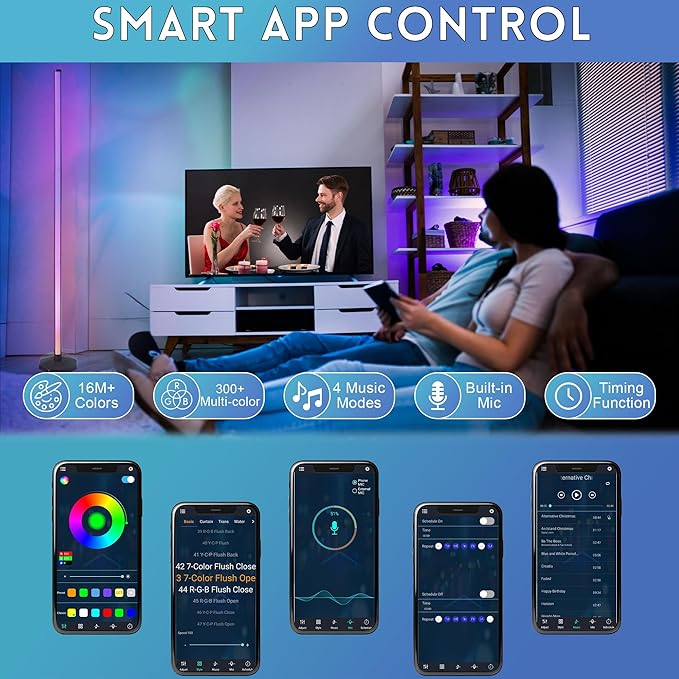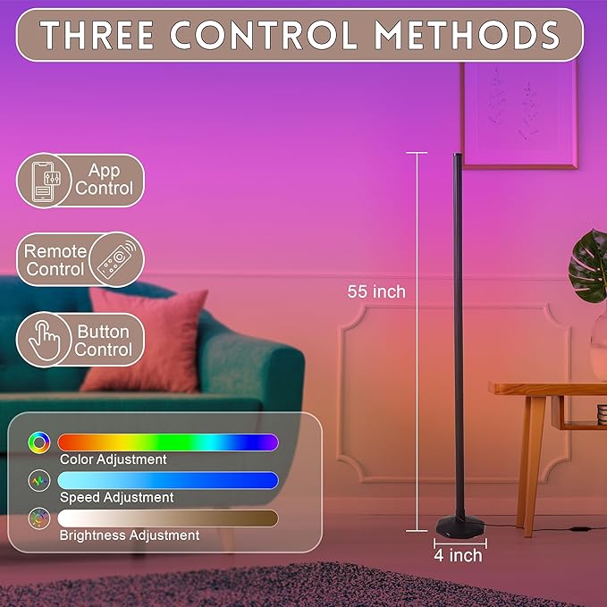 RGB Lamp for Any Room, LED Corner Floor Lamp for Living Room, Color Changing Light Bar for Bedroom, Smart Floor Lamp with Adjustable LED Lighting, Stick Lamp with Remote (165cm)