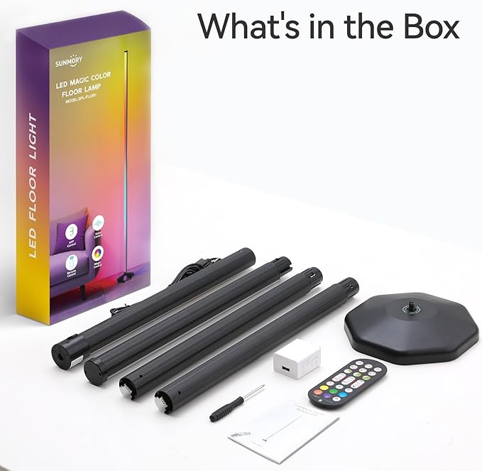 SUNMORY RGB LED Floor Lamp, 57" Corner Lamp with 80+ Scene & Timer, Smart Modern Ambient Lighting with Music Sync & 16 Million Colors, Remote & App Floor Lamps for Living Room, Gaming Room, Bedrooms