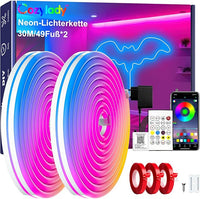 Cozylady 120Ft (60Ft * 2 Rolls) RGB LED Neon Rope Lights for Bedroom, 36m LED Strip Lamp with Double Sided Adhesive Tape, App/Remote Control DIY Lights Decorate The Outdoor and Indoor of Your Home