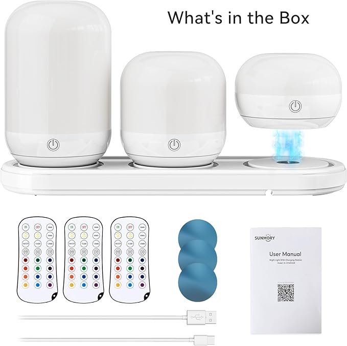 SUNMORY Rechargeable Night Light, Table Lamp for Bedroom, Dimmable Bedside Lamp with Magnetic Charging Station, Small Nightstand Lamp, LED Lights with 12 RGB Colors, Timer & Remote Control