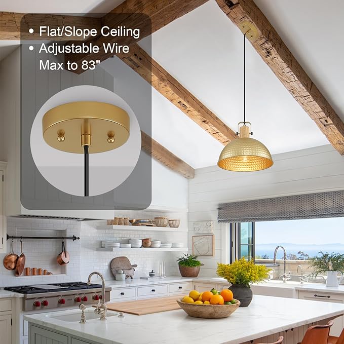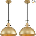 12 Inch Gold Pendant Lights Hammered Matte Pendant Lights for Kitchen Island Industrial Farmhouse Adjustable Height Dome Hanging Light Fixtures for Barn, Dining Room 1 Pack