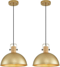 12 Inch Gold Pendant Lights Hammered Matte Pendant Lights for Kitchen Island Industrial Farmhouse Adjustable Height Dome Hanging Light Fixtures for Barn, Dining Room 2 Packs