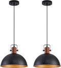 16 Inch Black Pendant Lights Hammered Matte Pendant Lights for Kitchen Island Industrial Farmhouse Adjustable Height Dome Hanging Light Fixtures for Barn, Dining Room 1 Pack