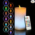 NICEME 3PCS LED Multi Colored Flameless Candles Acrylic Pillar Battery Operated Flickering Flame Color Changing Candles with Remote Control Real Wax Electric Fake Candles Ice Crystal, D3” x H4” 5" 6"