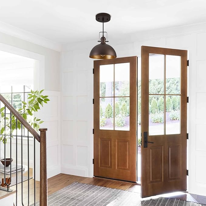 12 Inch Pendant Lights for Kitchen Island Matte ORB Farmhouse Pendant Light fixtures Adjustable Height Dome Hanging Light for Dinning Room Bedroom Hallway,3 Packs