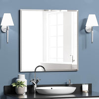 KOHROS Vanity Mirror Frameless Square Mirror, 24" x 24" Bathroom Wall Mirror w/Pencil Polished Edge, Anti-Rust, Tempered Glass, Hangs Horizontally or Vertically