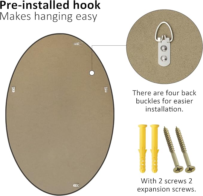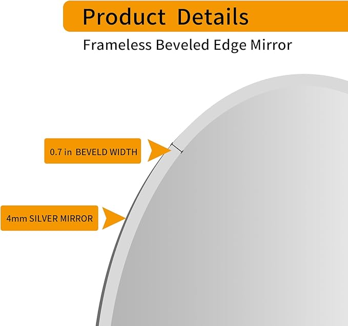 KOHROS Frameless Oval Mirror 20" x 28" Bathroom Wall Mirror w/Polished Beveled Edge, Anti-Rust, Tempered Glass (Silver)