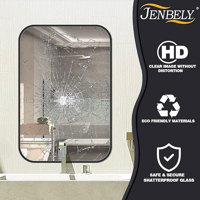 22x30 Inch Black Wall Mirror for Bathroom, Brushed Metal Framed Mirror with Rounded Corner, Rectangle Bathroom Vanity Mirror for Bedroom or Living Room, Horizontal/Vertical