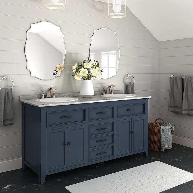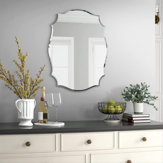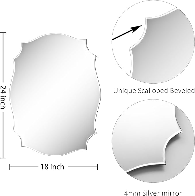 KOHROS Scalloped Beveled Edge Bathroom Mirrors for Over Sink 18" x 24" Silver Frameless Wall Mirror for Bathroom Vanity Entryway