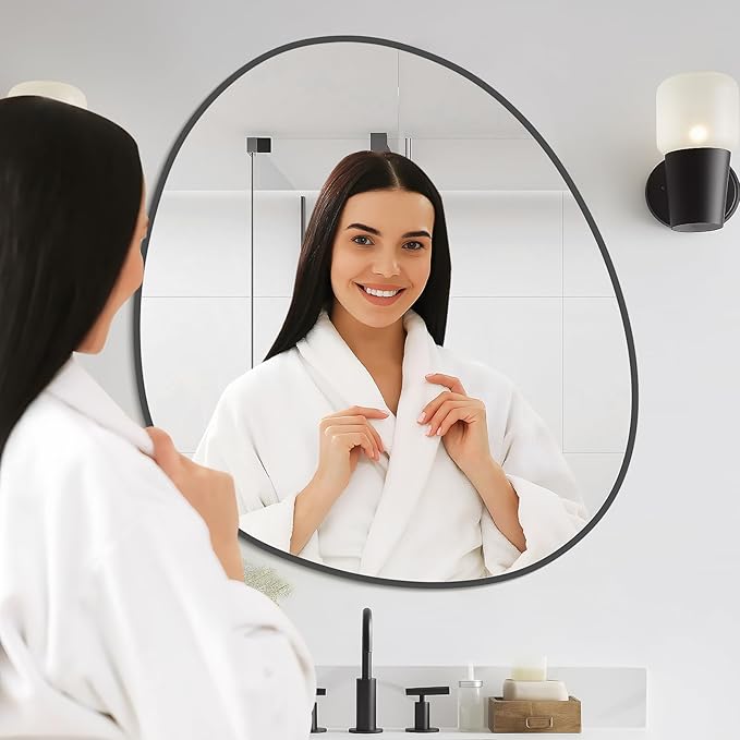 WallBeyond Asymmetrical Mirror, Irregular Wall Mirror, Abstract Wall Mirrors Decorative for Bedroom Living Room Entryway Hall, Unique Wall Mirror 28" H x 26" W, Black
