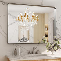 LOAAO 48X36 Inch Brushed Nickel Bathroom Mirror, Rounded Rectangle Silver Metal Frame Mirror, Brushed Nickel, Anti-Rust, Shatter Proof, Hangs Horizontally or Vertically