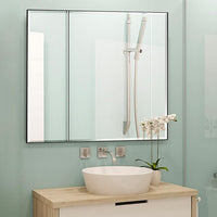 30x30 Inch Black Mirror with Beveled Trim, Aluminum Frame Bathroom Vanity Mirror, Copper-Free Mirror, Rectangle Wall Mounted Mirror, Modern Rectangular Mirror Horizontal or Vertical