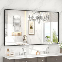 55x30 Inch Black Framed Bathroom Mirror for Wall, Large Matte Metal Framed Wall Mirror, Black Rectangle Bathroom Vanity Mirror, Anti-Rust, Shatterproof (Horizontal/Vertical)