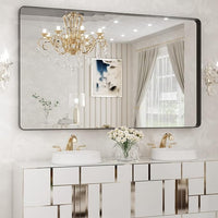 WEER Black Metal Framed Mirror, 60X36 Inch Rectangular Matte Black Wall Mirror for Bathroom, Rounded Corner Black Bathroom Vanity Mirror, Tempered Glass, Anti-Rust, Hangs Horizontal or Vertical